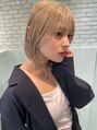 サイドバングが流れるようにフェイスレイヤーを入れた日韓ボブ。ブリーチ2回して色を抜いた後にベージュ系カラーでオンカラー。丸み感を出すのがスタイリングポイント。