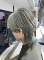 全体がハイトーンのブリーチベースに明るめのミントグリーンを被せて、毛先はエンドカラーで濃いグリーンを入れてコントラストをつけた事で、オシャレ感がアップします、