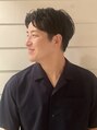 センターパートスタイル。スタイリングしやすいように緩めのパーマをかけています。