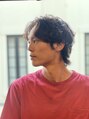 センターパートスタイル。スタイリングしやすいよ緩めのパーマをかけています。