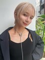 ブリーチ2~3回のハイトーンショート。マッシュベースでカット。輪郭に合わせてフェイスラインの長さを調節し、バックも似合わせベースで襟足の長さを設定。