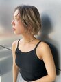 カーテンバングが流れるようにフェイスレイヤーを入れたボブ。ハイライトバレイヤージュでブリーチ2回して色を抜いた後にプラチナベージュ系カラーでオンカラー。ゆるめのウェービーなスタイリング。