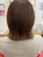 ボブスタイル。アレンジでヘアアイロンを使って毛先を外はねに、オイル仕上げで細かい束感をだせます。カラーは前回からの褪色を生かしてグラデーションカラーにし、毛先に行くほど明るくして、重めのボブスタイルでも軽さが出るように仕上げてます。