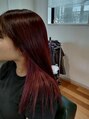 秋はツヤの出るお色が流行り、赤やピンクも人気ですが、今季はアメリカンチェリーのような深い赤みが人気です!モデルさんは2回のブリーチ履歴があり、中にはインナーブリーチ歴もあったので、中と表面で少し色の違った赤みが入りました!