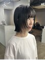 赤みのないブルーブラックにお顔まわりにざくざくレイヤーを入れる事で動きのあるスタイルに。ワンカールの簡単スタイリングです。