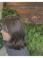 - カーキアッシュ系カラーで赤みや黄色味をおさえてブリーチなしで透明感ある柔らかいカラーに!!