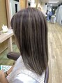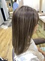 バレイヤージュ履歴のあるお客様に、白髪が気になるということで部分的にハイライトをオン!毛先のブリーチ履歴があるところにはやさしい薬剤でなるべくダメージレスに!くすみのあるグレージュで顔馴染みも◎