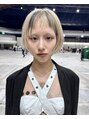 ホワイトブロンドミニボブローライト前髪デザインカラー/ホットペッパービューティー