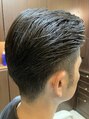 メンズショートスタイル 2ブロック、バリカン4ミリ、サイドの上の長さは耳にかからないぐらいの長さ、バックもバリカン4ミリで刈り上げる 上の長さは目のラインでカット スタイリングはジェルを使い、ナチュラルバックにセット