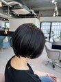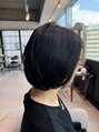 ベリーショートに抵抗のある方へ、おすすめお手入れしやすいショートボブ。カラーは赤みのない上品な雰囲気の、アッシュブラックにチェンジ!!白髪が気になる方へもオススメのカラーです。