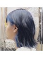 『bluefaces』 ネオンブルー×切りっぱなしロングボブ