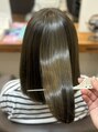 マットアッシュの柔らかい色味に指通りがサラサラの艶髪ミディアムスマイルです。スタイルを維持したい方、まとまりながら髪を伸ばしたい方におすすめです。