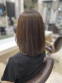 オリーブブラウンなカラーで透明感のあるミディアムレイヤーのスタイルです。