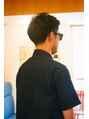 3mmの長さでサイドと襟足を刈り上げて、サイドは膨らまないようにして、後ろは頭の形がよく見えるように刈り上げと繋げていきます。前髪は短くして、上げて流すようにしています。トップは動きが出るようにして、立ち上がるようになっています。