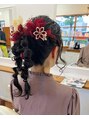 編み下ろしポニーテール。髪質改善/プレミークトリートメント/炭酸スパ/ヘッドスパ/ソーダスパ/カットカラー/インナーカラー/イヤリングカラー/ケアブリーチ/ヘアメイク/ヘアセット/パーティセット/郡山
