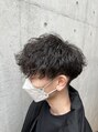 波巻きパーマ前下がりメンズヘア無造作トレンドパーマ