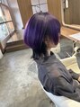 ショートウルフベースにパープルとブラックを入れたスタイル。髪質改善/プレミークトリートメント/炭酸スパ/ヘッドスパ/ソーダスパ/カットカラー/インナーカラー/イヤリングカラー/ケアブリーチ/ヘアメイク/ヘアセット/パーティセット/郡山