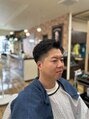 サイドはツーブロックで後ろは刈り上げて、短いけど後ろに流せるぐらい。ワックスとグリースを混ぜてパーマを活かして後ろに流す様にセット。大人っぽい短髪ショートで爽やかな印象に仕上がりました!!