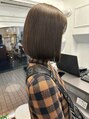 気に入っていただいたスタイルは、ブックマークをしてご提示ください。】ぱつッとボブに、人気の赤み消しカラーでオリーブベージュに!!