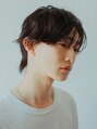 前髪長め、サイド耳にかかる長さのショートウルフカットです。マッシュからの伸ばしかけショートスタイルで、襟足は刈り上げず、トップはサイドに合わせて長さを決め、ウルフの丸みを出しています。毛先に軽くパーマをかけるとセットしやすくなります。