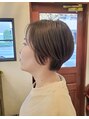 秋っぽくベージュベースにレッドを味付け♪コンパクトなフォルムにメリハリつけてスッキリとショートヘアにカットさせて頂きました^^