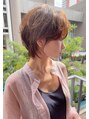 【気に入って頂いたスタイルは、ブックマークをしてご提示ください】baseをレザーカットでシルエットを作り、質感調整で柔らかさを出しました。丸いひし形シルエットはショートの王道です。
