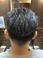 短く刈り上げる バリカン4ミリ バックも4ミリで刈り上げる上は髪の毛が立つか立たないかのギリギリぐらいの長さ 毛の量が多いのでよくスク