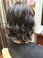全体を波巻きにして表面のみスパイラルのパーマをかけることでボリュームを抑えつつ動きに立体感が生まれますセットは根本乾かしてからムースをつけて少し毛先をドライヤーで乾かすセットが楽なスタイルになっております!