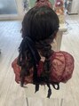 かっちりしすぎないツイン編み込みにリボンで可愛く仕上げております!