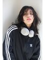 顔まわり、トップにレイヤーを入れたスタイルに、ダークトーンのグレー系のカラーです。32ミリアイロンを1回転、1.5回転のミックス巻きスタイリングしてます。