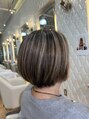 カラーは、一回ブリーチをしてからのミルクティーベージュを入れさせて頂きました♪カットは、襟足を刈り上げて、お洒落ショートに♪