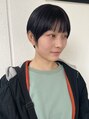 耳かけタイトなシルエットのコンパクトショートブリーチベースに深めのバイオレットカラーで自然光と室内での色の差を楽しめるお洒落カラー