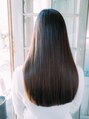センターパートのロングスタイルです。表面と顔まわりにレイヤーを入れてあげることで動きと軽さが出てまとまりやすくなります。カラーもナチュラルなブラウンなので毛先をゆるくうちに入れてあげることで簡単に大人可愛くなります。【髪質改善/縮毛矯正】