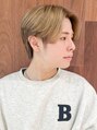 サイドのみツーブロックを入れて前下がりのセンターパートスタイルに。ネープはボリュームを抑えつつ、フロントは立ち上がりをつけて毛流れをつければ今時の韓国風マッシュに。