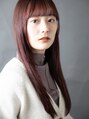 秋にオーダーの多い深みのあるカシスブラウンカラー。シンプルなレッド系のカラーに比べて、柔らかい印象で女性らしく見えます。レングスが長いと落ち着いたトーンでも重い印象にならないので〇。