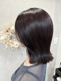 ミディアムボブディープパープルぱっつんボブ岡山南中央町