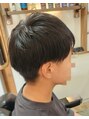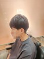 前髪の分かれる癖を生かして自然な流れを作りましたトップはスライドカットで動きを出して全体が単調にならないようにしました