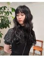 重ためぷつっとロング。38mmの方で大きめにウェーブに巻いてスタイリング。