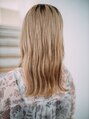 外国人風ハイトーンミディアムスタイル。顔まわりにレイヤーが入っているのでセンターパートに分け流すように巻くことでクールな印象に。根元に暗い部分を残し立体感を出すことによて動きを出し重過ぎない軽い印象に。【ブリーチ/ダブルカラー/ハイライト】