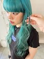 毛先の方はブリーチ2回以上必須です。青緑に寄せたカラーで、色抜けをミントグリーンに!個性的なおしゃれカラーです