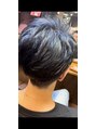 ブリーチインナーピンクカラーで鎖骨くらいのマッシュウルフだったスタイルから、ツーブロ短髪ブルーブラックへ。ブルーのハイライトでアクセントつけて思い切ったイメチェンになりました。
