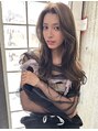 胸上のロングヘア前髪は顎の長さ、おくれ毛と顔まわりのレイヤーをしっかりとつないでいます。顔まわりをスタイリングする事でひし形になり、毛流れもでき、小顔効果がございます全体はワンカール巻くだけで様になります。ハイライトを施術してます☆