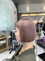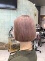 切りっぱなしのミニボブ。ブリーチで透き通った色も自在に出来ます♪ ブリーチ1回から薄めなピンクベージュをオンカラーしました。