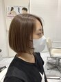 切りっぱなしの前下がりボブ。ブリーチで透き通った色も自在に出来ます♪ ブリーチ1回から長持ちするように濃いめにミルクティーベージュをオンカラーしました。