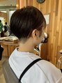 カラーはオレンジブラウンで、カットは刈り上げのタイトショートスタイルです