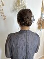 ヘアセットとフルメイクをさせて頂きました。メイクは元の綺麗なお肌を生かして下地とコンシーラーとパウダーのみ。アイシャドウはグレーのワンピースに映える上品艶ピンクで…リップはシアーなコーラル系で大人っぽく♪ヘアは編み込みシニヨンで飾り映え♪