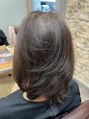 自然なボリューム感と美しさを大切にしたミディアムスタイル。レイヤーでシルエットを調整し、明るめの色味で白髪を自然にカバーしながら、透明感と柔らかさを引き出します。