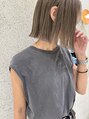 ブリーチ1回~2回のオリーブベージュカラー。透明感のある赤みなしカラー。カットは切りっぱなしカットでぷつっとシンプルに◎