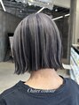 多毛さん再現性◎外ハネボブスタイル!表面にデザインカラーで明るいカラーを入れる事で軽やかなスタイルに!寒色系がお似合いな方なのでパープルシルバーとブラックのコントラスト強めな配色に!ベージュとブラウンなど組み合わせを変えても素敵なスタイル