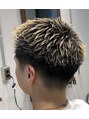 金髪伸びかけのスパイキーショート◎もちろん黒髪でもカッコよく仕上がります!スパイキーショートは毛先の軽さ具合がセットのしやすさに繋がります!ツンツンされたシルエットに合うように低めのフェードを取り入れてバランスよくカットします!